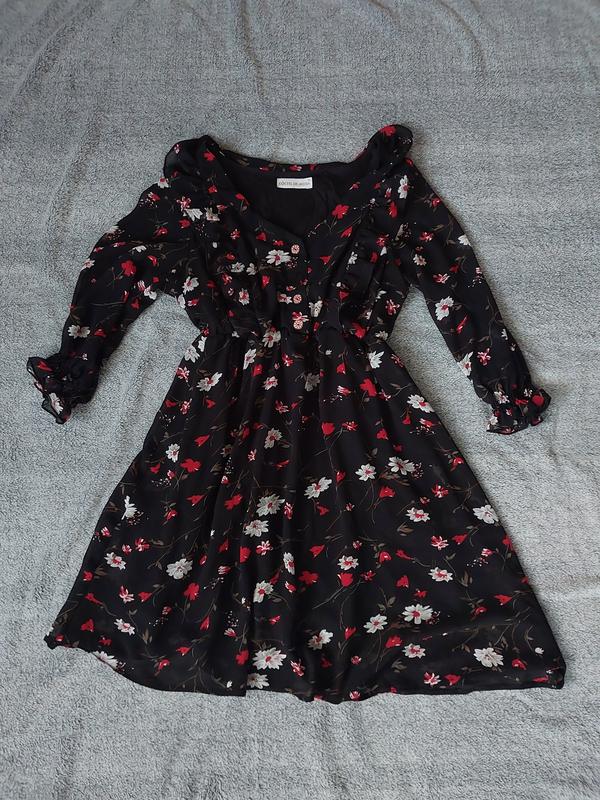Жіноча сукня чорного кольору,підходить на розмір с-м.Гарний стан,але є невеличкий дефект(відсутній один із ґудзиків) Довжина-78 см Відстань від пройми до пройми-40 см