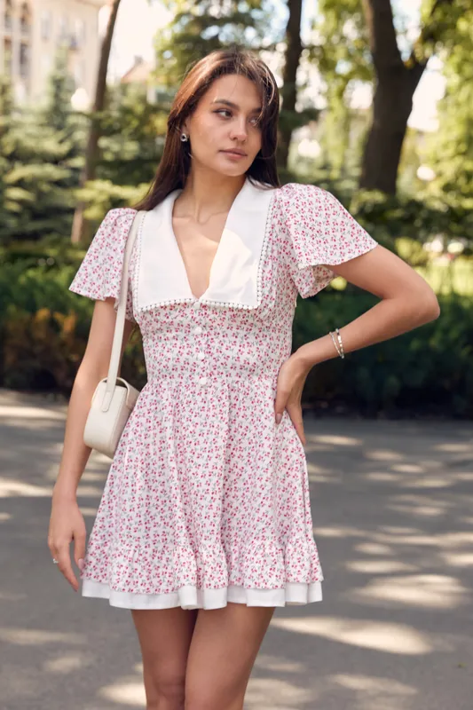 Легкое короткое платье с цветочным принтом мини платье с белым воротником
