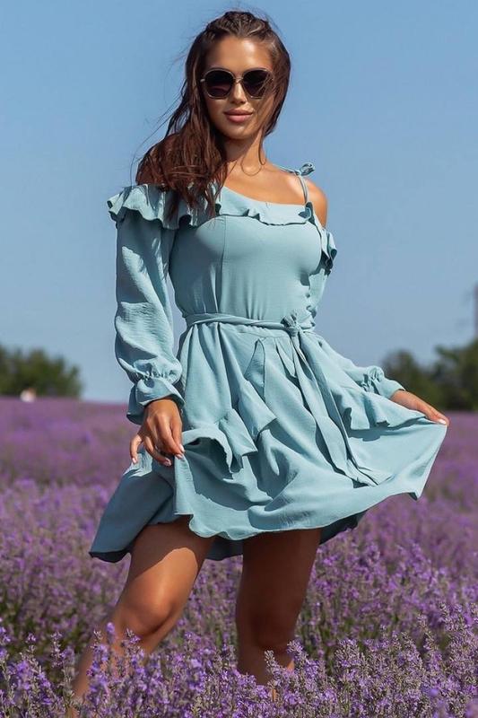 Платье Новинка мод№606 Цена: 540 грн. Размеры: 42-44,46-48. Ткань:американский креп жатка Цвет:лаванда, небесно -бирюзовый,бледно-васильковый. Длина платья регулируется за счёт завязок. Рост модели 168см. 42-44 на ОГ - 84-88 см 46-48 на ОГ-92-96 см. Замеры по верху изделия.