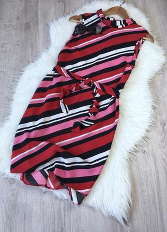 Дуже легка і зручна літня сукня в діагональну смужку. Прямий покрій, без рукавів і застібок. 100% віскоза, надзвичайно приємна до тіла. Можна носити з поясом. Розмір 8, десь на S/M