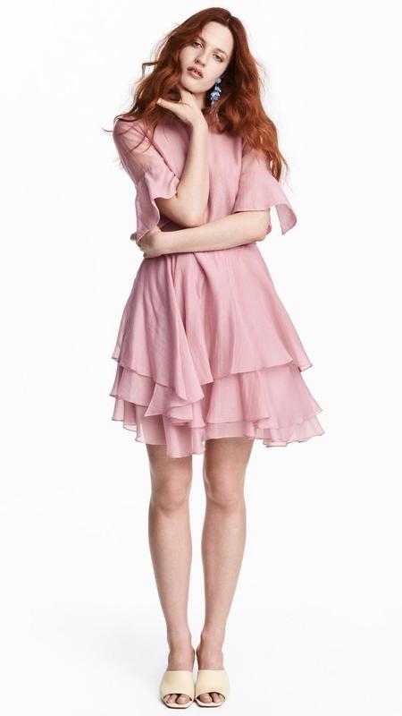 Рожева сукня з ліоцеллу повітряна сукня зефірка легка сукня міні h&m платье с рюшами плать...