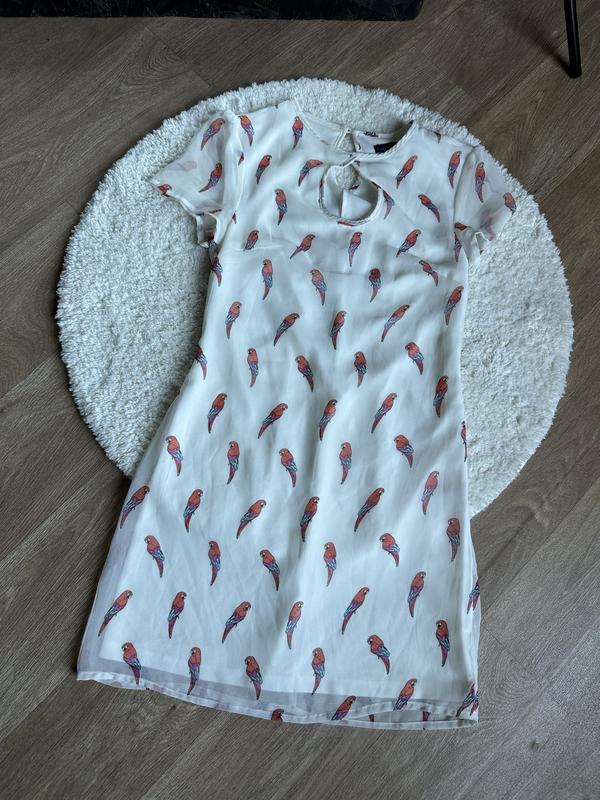 Платье сарафан белый с попугаями
