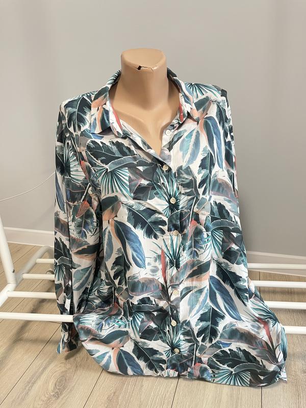 Туника или платье рубашка, красивые цвета принта, тоненькая нежная как шелк вискоза, очень приятная ткань, не носила, состояние новой,one гораздо дешевле, размер М, но за счет свободного и прямого кроя может быть и на другие, спереди короче чем сзади. На пляж басейн 🔥