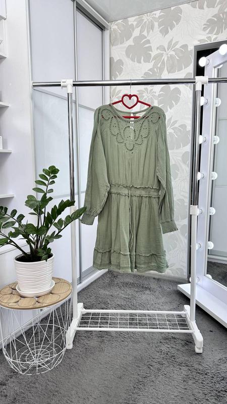 Очень красивое платье из муслина, 100% коттон, р. 16. длина 99 см, длина до резинки 49 см. ог до 120 см. от 90-106 см. ос 130 см. рукав 75 см от горловины.