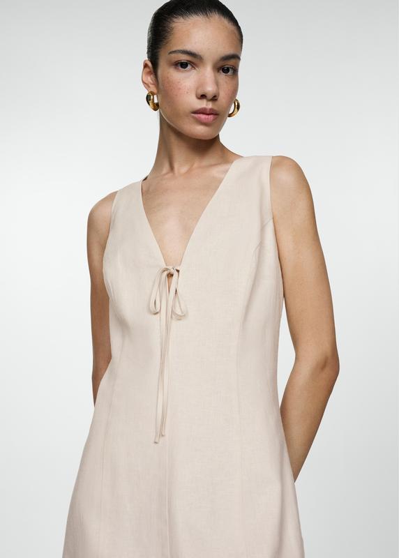 Ціна 2100 грн Тканина з суміші льону. Короткий дизайн. Прямий дизайн. V-подібний виріз. Без рукавів. Широкі бретелі. Невидима застібка-блискавка на спині. Декоративний бант. Внутрішня підкладка. В наявності Плюс.