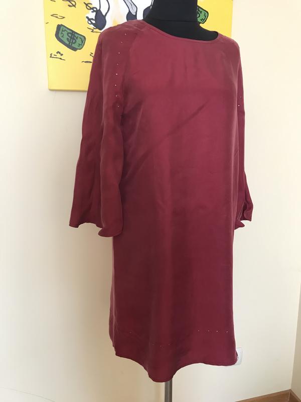 Платье качественной ткани напоминает шелковую разм(38); длина 90; длина рукава от ворота 57 к низу расширенный 3/4; по груди 50; бедра 53; подпишитесь и смотрите свои обновления. Предлагаю Кожаные сумки, ремни, обувь, а также одежду из натуральных материалов известных брендов