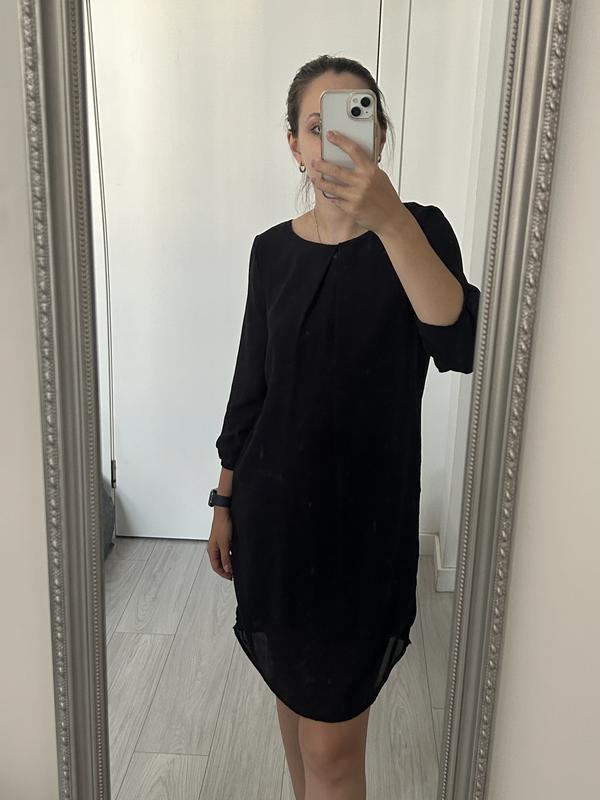 Черное платье от hm. Есть нижняя подкладка, не просвечивает. Мой рост 165 см. Размер s