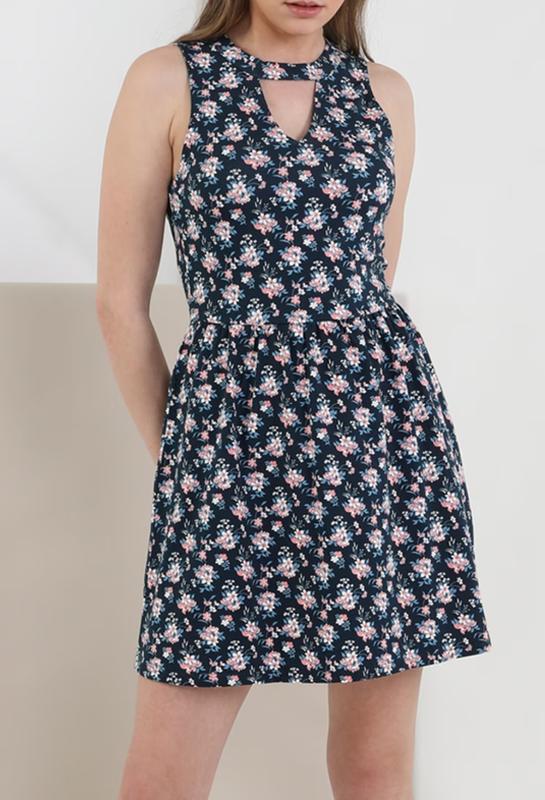 Продам новое летнее платье COLIN'S - без рукавов с цветочным рисунком, круглый вырез и вырез - треугольник спереди. Цвет - темно-синий. Размер М.