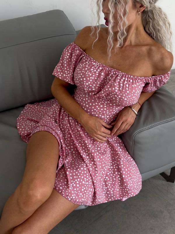 Сукня Мод: 1521-1128 Тканина: софт принт Размер: 42-44, 44-46 Цвет; розовый с белым