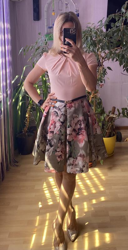 Красивое платье, низ из плотные ткани, есть застежка потайная на боку, очень красиво садится, без пояса
