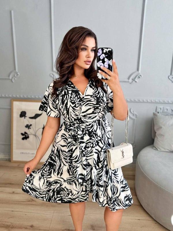 Тканина: софт Розмір :48-50,52-54,56-58,60-62 Колір:білий,бутилка,лео,синій Довжина сукні :100/101/102/103 см Універсальна сукня на запах,тому ви з легкістю підберете розмір.Широкі рукавчики.Можно вдягати ,як на прогулянку,так і на свято Заміри: 48-50 ОГ від 103 до 112 52-54 ОГ від 113 до 122 56-58 ОГ від 123 до 132 60-62 ОГ від 133 до 142 У моделі ОГ 107,на ній 48-50. мм