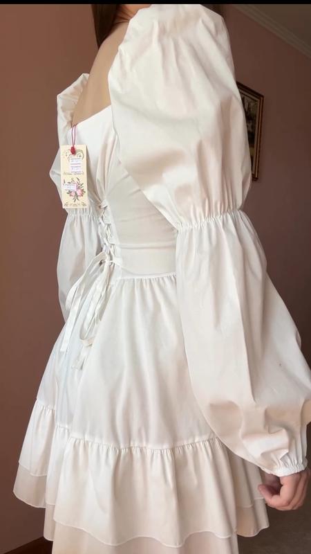 Дополнительные видео и фото могу скинуть Брала ее при 950 грн новенький не выбрал размер а так очень красивый размер 42-44 Спереди застегивается на пуговицы, сзади регулируется шнуровкой Длина 80 см, рукав 70 см