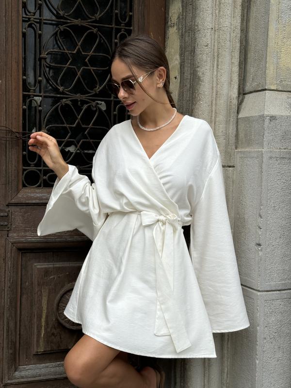 Сукня-кімоно вільного крою🤍 Розмір регулюється поясом. Колір: молочний Склад: 60% льон, 40% віскоза Розмір: one size