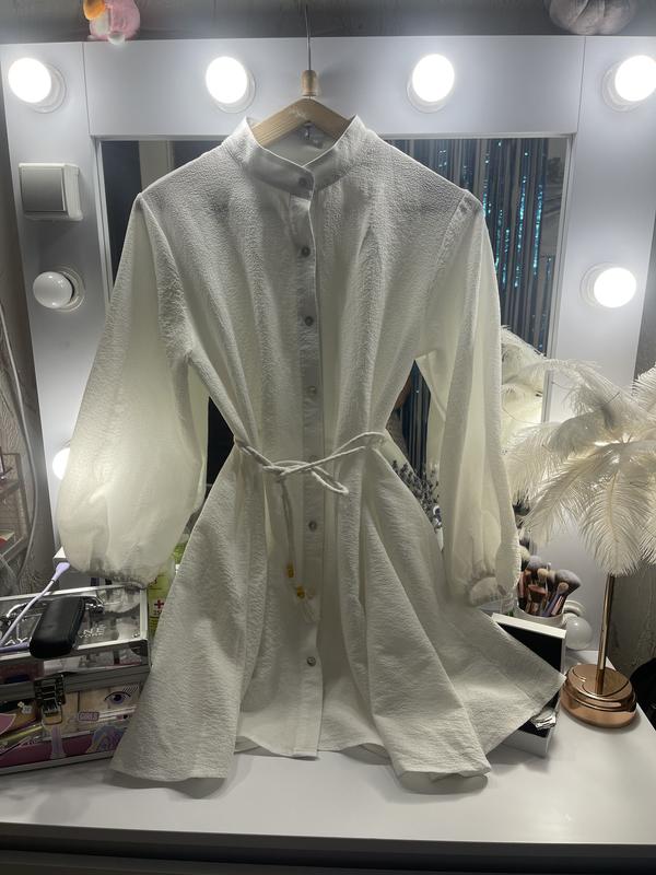Очень красивое платье рубашка, но без пояска, состояние нового, размер С или М, но на не высокую девочку, у меня рост 168, то чуточку коротковатая ткань в виде муслин