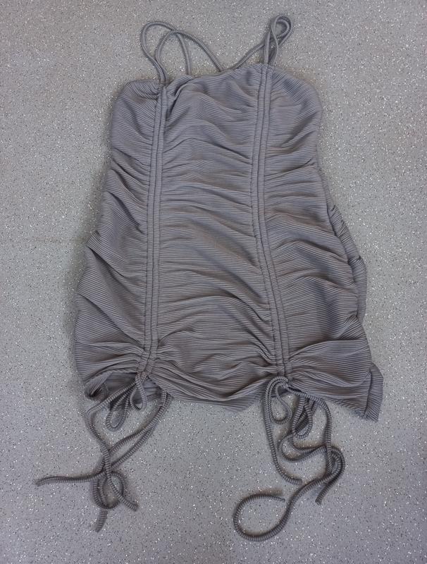 размер:тенце 14, eu 42 длина: 86-98 см ог: до 49 см от: до 47 см об: до 60 см тканина: 87 % поліестер, 13 % еластан Платье хорошо тянется, завязки регулируются и спереди и сзади
