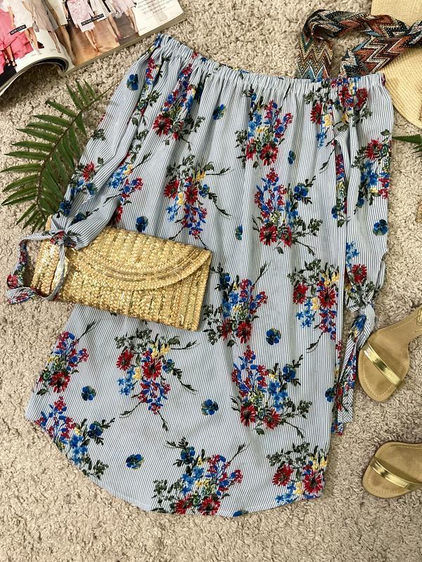 Для більш точного визначення, виміри, порівнюйте із вимірами подібної речі, а не зі своїми обсягами. Літня сукня сорочка у квітковий принт. Тканина тонка, фактурна, не просвічується, не тягнеться. Без застібок. Крій: прямий, плечі спущені на резинці. На рукавах зав'язки. По бокам закруглені вирізи. Стан: ідеальний. Дефекти: ні. Розмір на бирці: 10 (Виміри виробу вимірюються в напівобхваті, а не від шва до шва!) Виміри виробу: Плечі 40см. Рукав 43см., Висота пройми 11см., Ширина рукава 18см., Напівобхват грудей 51см., Напівобхват талії 52см., Напівобхват стегон 53см., Напівобхват низ 53см., довжина по спині 77см. довжина від плеча 74см. Склад тканини: бирка зрізана. Країна виробник: бирка зрізана. Бренд: Cameo Rose. Оплата і доставка: Оплата на картку монобанк. Бронювання на оплату тільки 24г. При змінах наміру купувати обов'язково повідомляйте! Доставка: На час введення воєнного стану уточнюйте чи можлива доставка до Вашого пункту. Актуальні новини можна уточнити на сайті перевізника та за номером телефону контакт-центрів. Не забудьте ПІДПИСАТИСЯ щоб бути в курси всіх новинок та розпродажів!