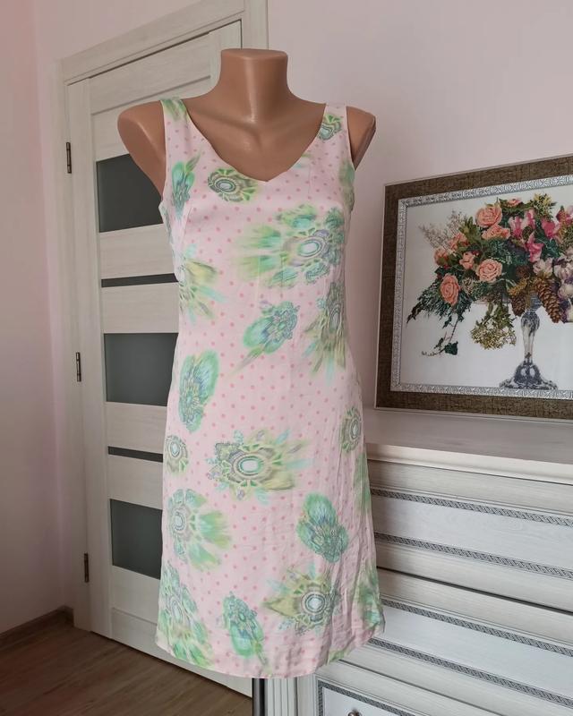 из натурального нежного шелка, на шелковой подкладке, в идеальном состоянии, незначительный нюанс - последнее фото размер 36 длина 85 поб 40. - тянется до 47