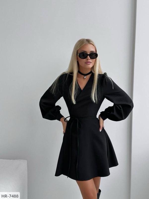 Сукня HR-7486 Размеры: 48-52 Тканина: креп-костюмка Цвет: Черный, беж Базовое платье на все случаи жизни Приталенный силуэт, регулируемая талия за счет завязок, свободная юбка и локанический вырез декольте.