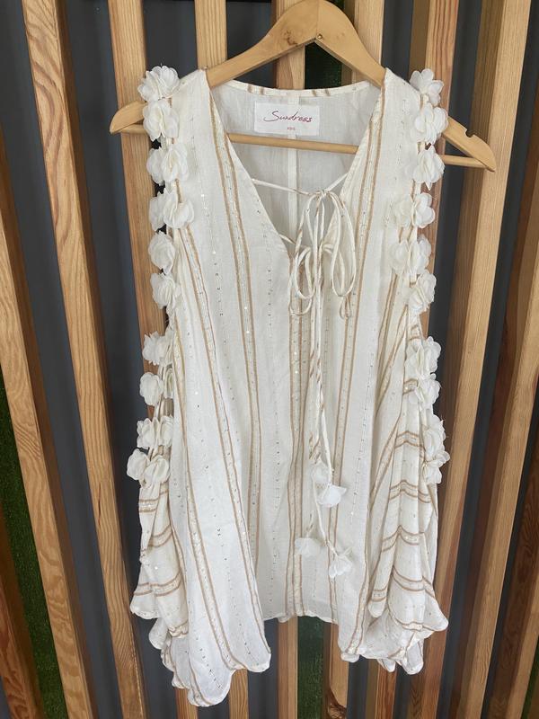 Есть отверстия под пояс, но пояс отсутствует В вертикальную полоску с металлизированными золотыми волокнами