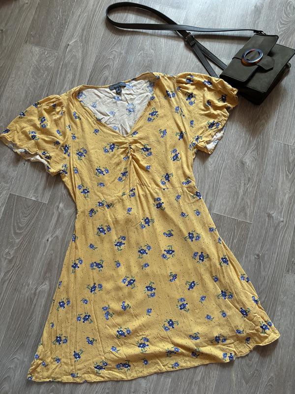 Платье желтое Сзади с поясом и резинкой, благодаря этому хорошо тянется талия