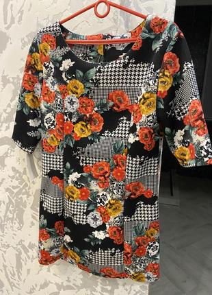 Новое платье в цветы и в трендовую гусиную лапку Размер М, небольшая Л