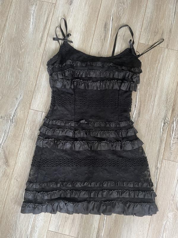 Коктейльна сукня, нова Колір чорний, з ніжного мережева та атласної стрічки, на підкладці Дуже гарно сідає по фігурі Тканина тягнеться, блискавка-застібка збоку. Розмір S Заміри: Напівобхват грудей-43 см Напівобхват по талії- 35 см Напівобхват стегон-46 см Довжина—81 см