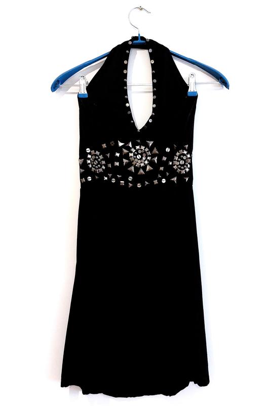 Платье от итальянского бренда Pink Shadow. Декорировано металлическими элементами. Ткань мягкая и приятная на ощупь, хорошо тянется. (6156) Размер: S/M Полуобхват груди: 40 см, тянется до 56 см Полуобхват талии: 35 см, тянется до 53 см Полуобхват бедер: 49 см, тянется до 70 см Длина изделия: 81 см Состав: 70% вискоза, 20% шелк, 10% эластан