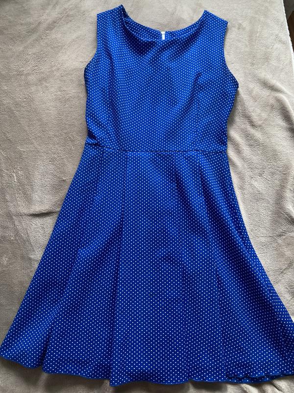 Платье голубое в белые горошки Стан 9/10 Размер S