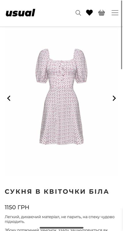 Платье укр. бренда USUAL, размер L, длина 82 см – на рост 160-170 см. Платье новенькое, не одето, не взорвалось. Цена на сайте – 1150 грн.