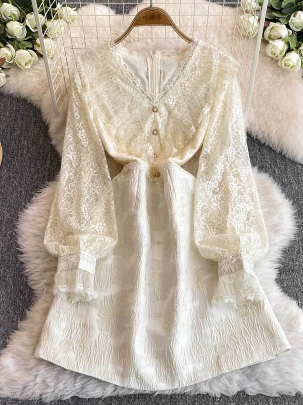 Романтичное кружевное платье с объемными прозрачными рукавами дополнено декоративными пуговицами и текстурной юбкой❤️ Мод 2541 Размер: м, л Тканина: мереживо Цена 1360 грн