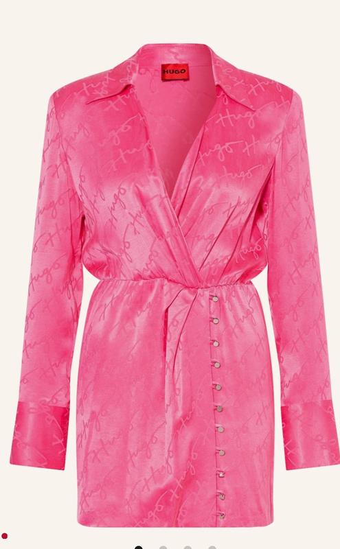 Сукня міні з суцільним малюнком логотипу . Нова . Оригінал. Розмір S. Колір : рожевий . V подібний виріз . Глибоке декольте. Матеріал : 60% купро , 40 % віскоза . Дуже стильна та гарно виглядає.