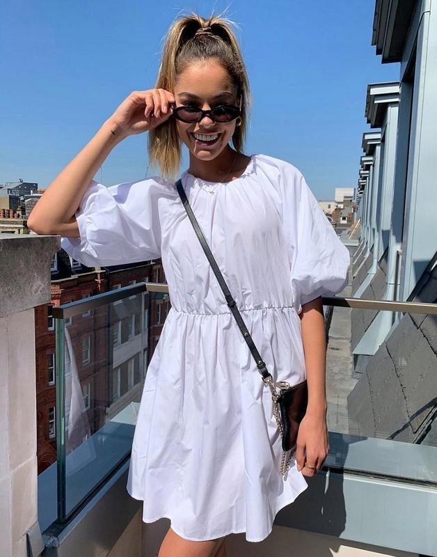 Белое свободное мини платье из хлопкового поплина ASOS DESIGN Uk 10 Длина 84 Пог 45 -47 Пит 46