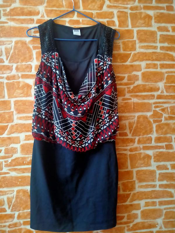 отличное актуальное платье из комбинированной ткани, состояние идеальное, длина 84, полуобхват по груди 42 (тянется)