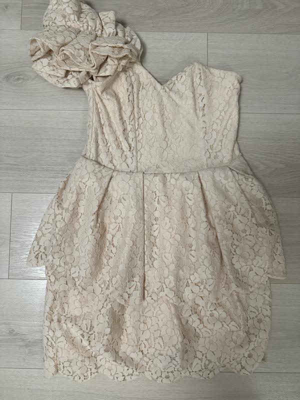 Плаття нове з біркою. Повністю гепюр. На одну сторону шлейка. Ззаді замочок. Низ тюльпан. Дуже гарне та ніжне. Розмір С-М