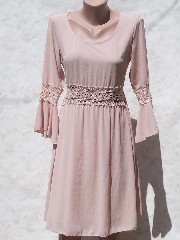 Состояние идеальное. Плечи 39, грудь 42.5 Длина 88 Рукав46.5 Бирка с составом отсутствует. Кружево, полиэстер. Юбка на подкладкерукав на концах раклешен.Цвет персиковый.