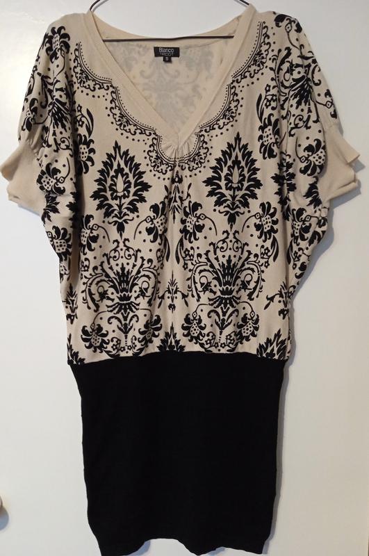 платье -туника,верх молочного цвета с фактурным узором, размер S,низ черный эластичный,бу,стан-добрательный