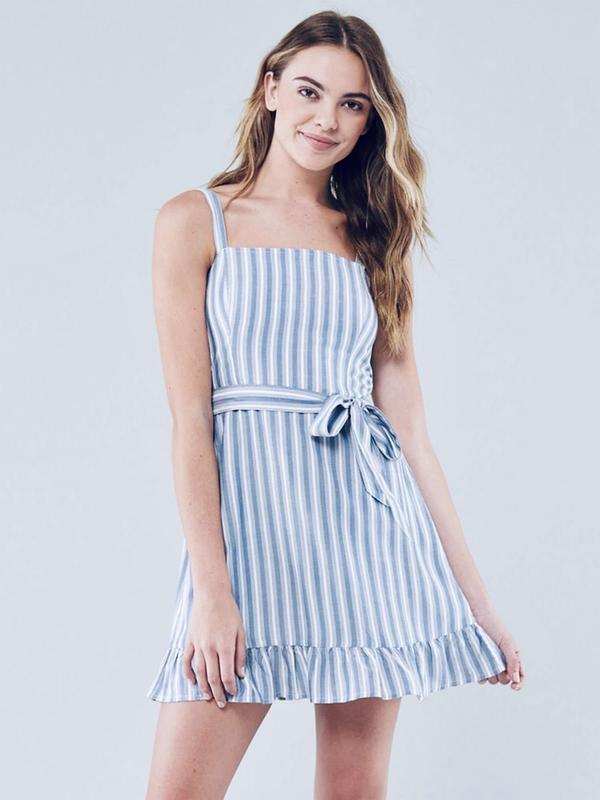 Женское платье мини от Hollister. Стильное платье с принтом в вертикальную полоску. Бретели регулируются, задняя часть с резинкой, что добавляет комфорта и удобства в носке,поясок подчеркивает талию и дополняет романтичный летний образ. Стан идеален абсолютно. Размер XS