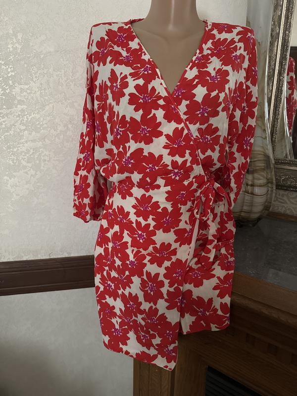 Платье с имитацией на запах. Длина рукава от горловины - 52 ( рукав 3/4 с резинкой), пот - 35 см ( по спинке резинка), по бедер - 46 см, длина платья -82,5 см. Платье слегка тянется ( совсем немножко)