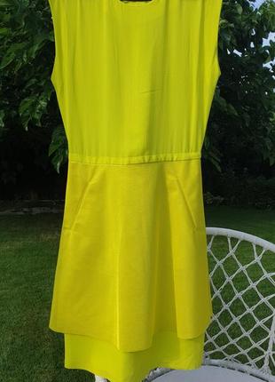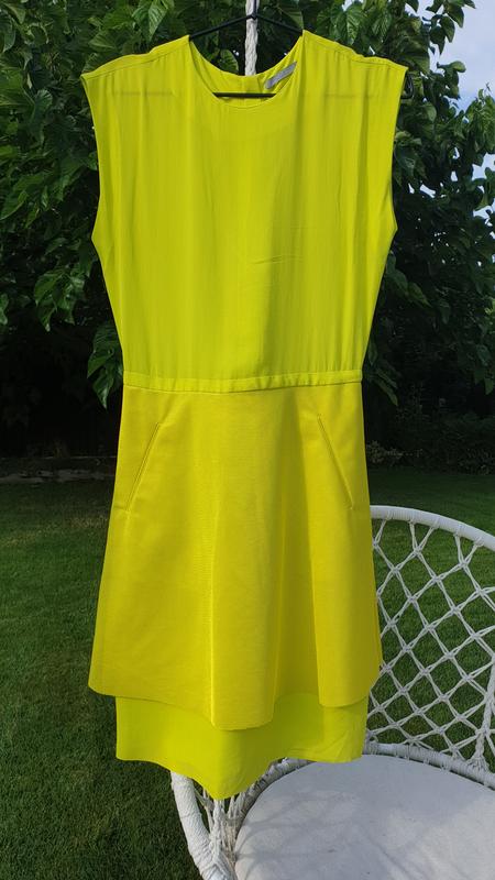 Яскрава неонова сукня COS. Интересная комбинация фактурной двухъярусной юбки и нежного легкого верха. Размер EU 34 (XS-S). На спине контрастная молния. Фурнитура YKK. Стан идеален без дефектов.