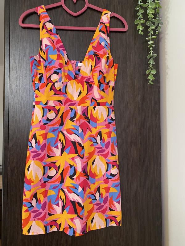 Яркая мини-платье Sinsay, размер xs. Красиво ложится по фигуре и подчеркивает ее. Состояние новой