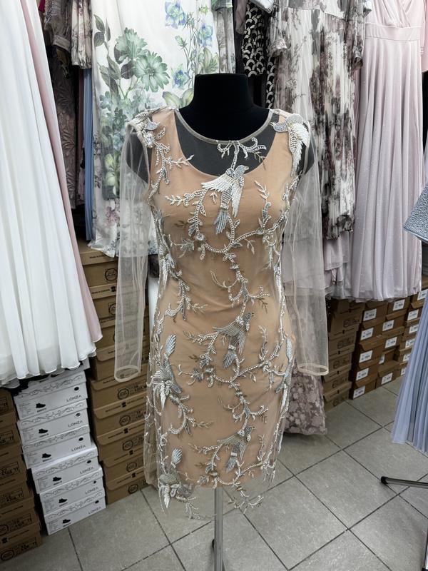 Это платье сочетает в себе элегантность и утонченность. Подкладка доступна в двух классических цветах: бежевом или черном, что позволяет выбрать тот, который лучше всего подходит для вашего стиля и события. Верхний слой изготовлен из натуральной органзы, которая придает платью легкость и воздушность. Сетка украшена детализированной вышивкой в виде птиц, что добавляет уникальности и роскошного вида. Размер: Беж 42 Черное 44 Цена: 500грн