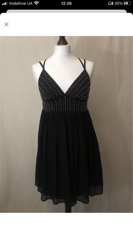 Легкое тонкое платье с открытой спиной, на бретелях. Лиф и пояс под грудью расшит бисером. Юбка на подкладке, сбоку молния. Замеры: под грудью - 38, чашка на 2 размера груди. Длина от пояса - 52 см
