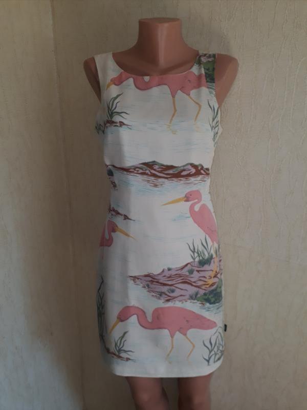 Супервое оригинальное платье didi принт розовый фламинго в составе лен и вискоза