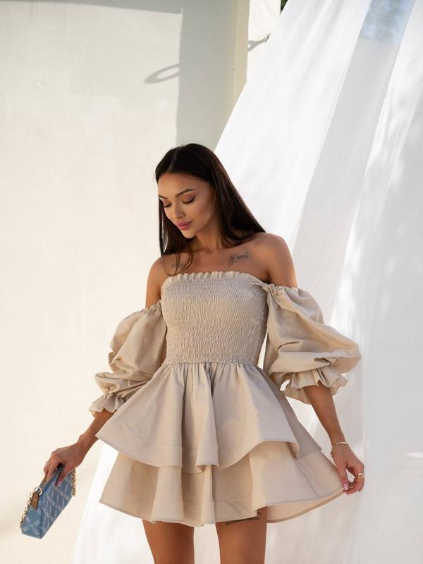Льняное объемное платье 100% хлопок с резинкой на груди и спинке, пышное платье из хлопка,...