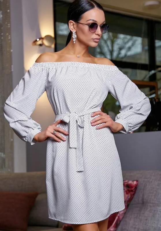 Платье женское Стильное женское платье. Свободного кроя с длинным рукавом. Страна производитель: Украина Материал: Софт Состав: Вискоза50%,полиэстер45%,эластан5% Качество: Отличие Размерность: Норма Размер в наличии: S,M,L,XL Цвет в наличии: белый ( ближе к молочному) ЗАМІРИ: Размер: S Полуобхват груди: 41 см Полуобхват талии: 46 см Полуобхват бедер: 51 см Длина рукава: 45 см Длина изделия: 74 см Размер: M Полуобхват груди: 44 см Полуобхват талии: 48 см Полуобхват бедер: 53 см Длина рукава: 48 см Длина изделия: 74 см Размер: L Полуобхват груди: 45 см Полуобхват талии: 51 см Полуобхват бедер: 56 см Длина рукава: 48 см Длина изделия: 78 см Размер: XL Полуобхват груди: 48 см Полуобхват талии: 54 см Полуобхват бедер: 58 см Длина рукава: 50 см Длина изделия: 78 см