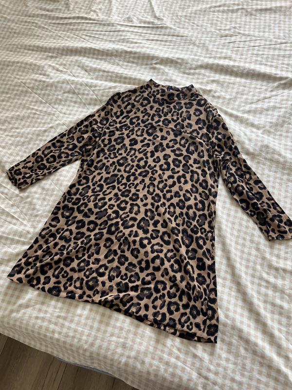 Міні-сукня зі 100% віскози в леопардовий принт бренду Bimba Y Lola. Розмір на бірці М, на S теж буде добре. Фасон трапеції. Довжина по спинці 80,5 см, довжина рукава 48 см