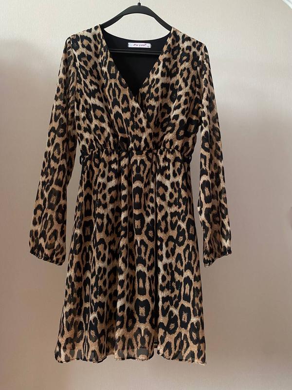 трендова леопардова сукня шифон на подкладке размер 36 с состояние идеально