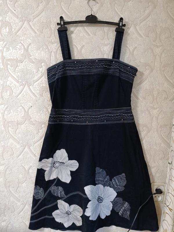 Заміри: пог 49, пот 45, поб 64 довжина ліфа 33, довжина спідниці 58, довжина бретель 18. Сукня закривається на змійку, яка розташована з лівого боку під рукою