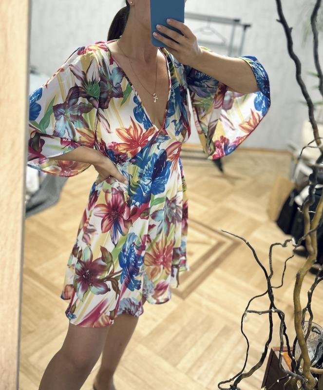 Платье летнее, пляжное, яркого принта, легкая, размер S (36)