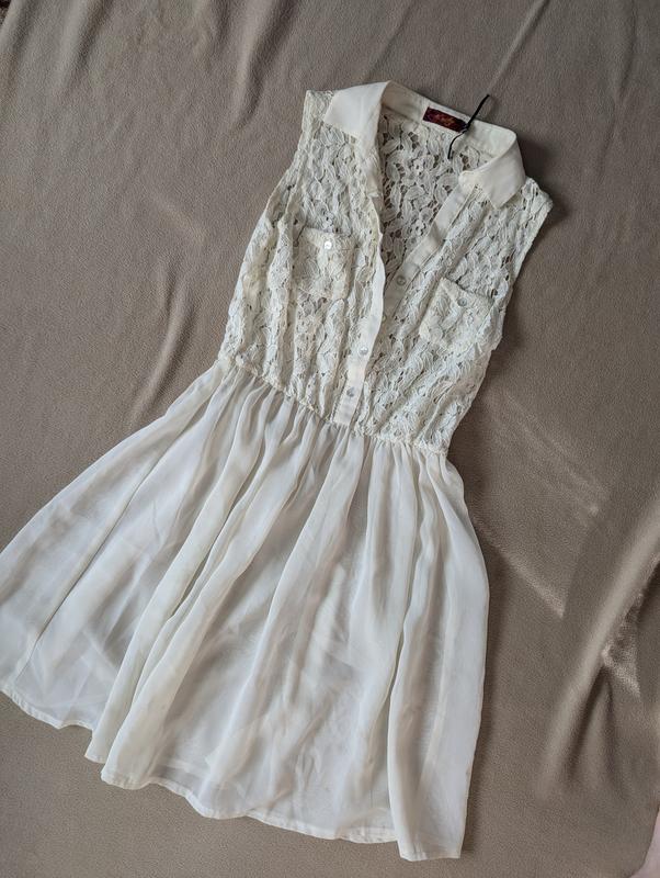 ❗Разгружаю летний гардероб ❗Цены от 30 грн + 🎁. Входя в профиль, там много красивого 💫 Летнее платье, БЕЗ ПОДКЛАДКИ в отличном состоянии, молочного оттенка с сетевым верхом. Замер дам при необходимости в реальном количестве.